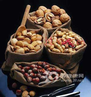 坚果。高纤维、高蛋白、有益心脏且抗老化,这些都是坚果类食物的优点。但由于过高的脂肪含量,适量食用是关键。专家认为,不论是杏仁、花生,还是核桃、榛子,每天不超过半两最佳。