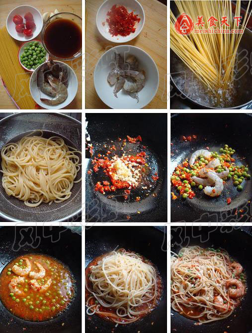 8、烧至汤汁开始黏稠,倒入煮好的意大利面;