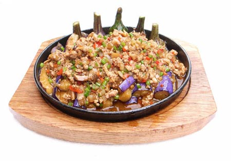 这里的食客告诉我们这道主菜名叫:铁板茄子,这里面有茄子、肉糜、豆腐,吃起来,口味酸酸甜甜的,油而不腻,许多食客对这道菜真是爱不释“嘴”。