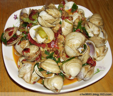 白蛤很便宜,10块钱买了三斤,煮完汤后还剩下好多,所以打算炒一盘麻辣味的白蛤。