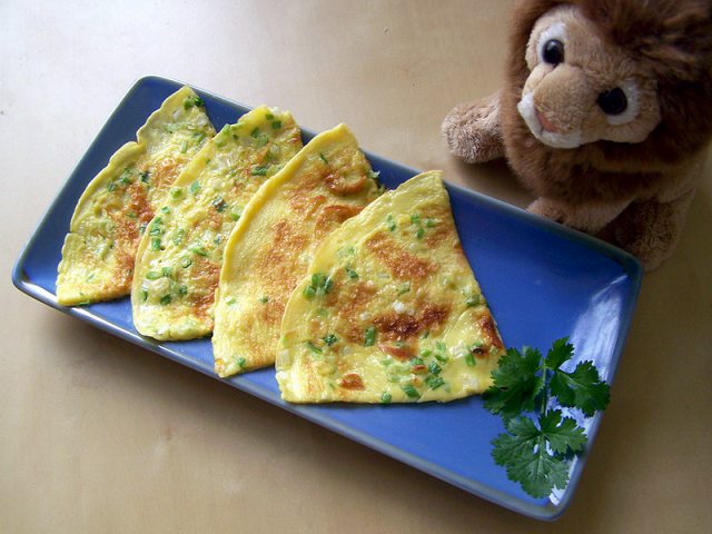 鸡蛋饼2只柴鸡蛋加一点点水,打成乳黄色,然后一点点地的加面粉,边加边搅和,直到成粘稠的糊糊。切小葱放进糊糊,加少许盐。其他什么都不放。热油,调到小火,把糊糊倒进一半,晃匀了,当用小铲可以轻松产起的时候,再翻面。香喷喷的鸡蛋饼就这么做成了!