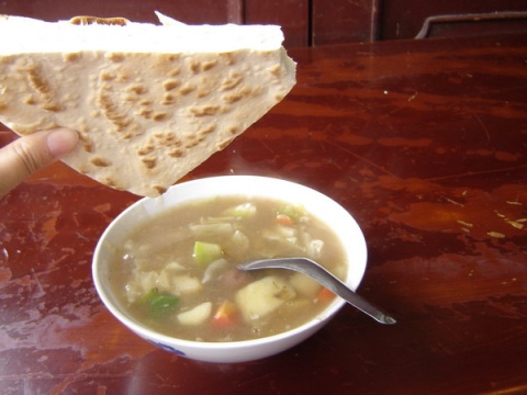回民做的馍,真的好吃哦~~ 不过好硬邦邦的,可能就是这么硬才好吃吧。碗里面是当地的胡辣汤。