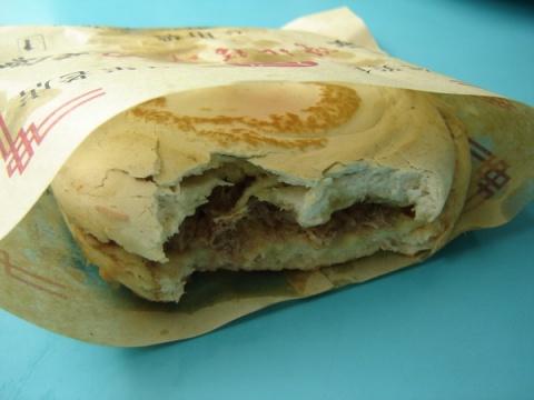 陕西的名小吃,肉夹馍,的确比深圳的好吃很多呢!来了这里才知道原来正宗肉夹馍都是猪肉,没有什么夹羊肉夹牛肉的品种,而且在回民街吃肉夹馍,是非常之让回民鄙视的!当然里面也没有卖的,呵呵