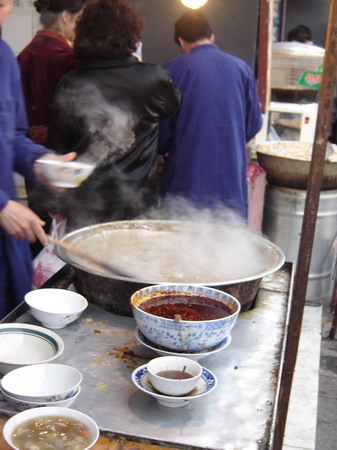 这个是胡辣汤还在锅里的样子,好大的锅啊。。我们的话来说就是个大盆子了!