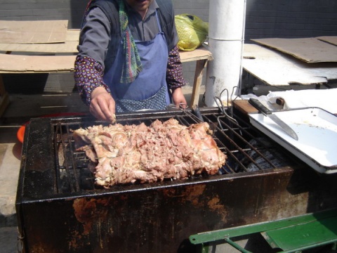 烤全羊,拍的时候,这个全羊还是像被子折着的呢!一摊开真是大开眼界。。好大一块肉啊!味道也很不错,很香,吃的话就是切几大块。