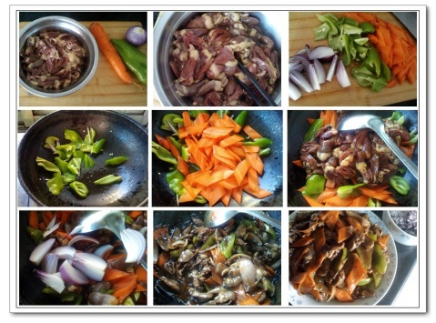 7、鸡心炒的半熟的时候放入洋葱以保持洋葱清脆的口感