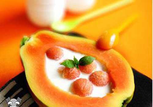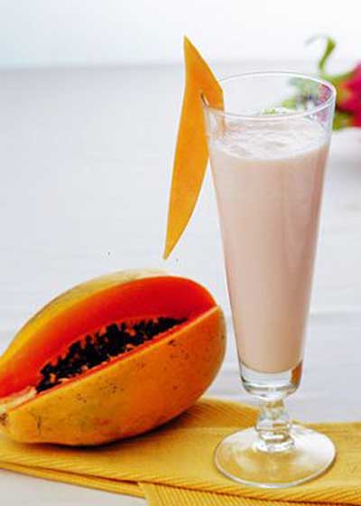 做法:木瓜切成块,连同牛奶、蛋黄一起打成汁,再加入柠檬汁及蜂蜜,