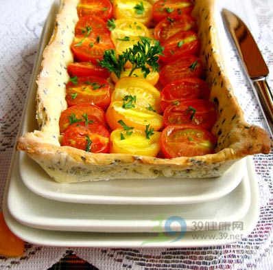 小番茄200克、派皮面团150克(80克面粉、1个鸡蛋、30黄油、盐2克、酵母1克、芝麻一勺)。