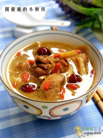 有草果1颗,陈皮1块,熟地1块、当归1块、党参2条、川芎1块、黄耆5块、香叶2片、枹杞子适量、红枣8颗。(熟地,当归,川芎的药味都很重,所以我都放的很少量每样一片)