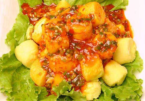 据说,当年慈禧太后驻颜有术的秘方,就是每天都要吃“豆腐”,而御厨房里的49口锅里,全都放有镶着珍珠的豆腐,49口锅轮番蒸,好让慈禧太后可以天天尝到一味润肤养颜的珍珠豆腐呢!豆腐主要由黄豆加水制成,内含人体必需的多种微量元素,还含有丰富的优质蛋白,素有“植物肉”之美称。而豆腐的消化吸收率达95%以上,两小块豆腐,即可满足人体1天钙的需要量。因黄豆含有丰富的植物性蛋白质,且完全不含胆固醇,近几年来已被医学证实,豆腐对人体非常有益,它可促进体内毒素排出,令肌肤重现白滑及光泽,其所含的不饱和脂肪酸更可分解附于血管壁的胆固醇,不仅降低心血管疾病的发生,对肾脏也具保护作用,有助于减少肥胖的机会,同时豆腐含有一种丰富的植物性雌激素,作用就像人体的雌激素。注重保养的日本妇女喜欢食用豆腐,因此很少受更年期症状之苦。绝对是女性的美丽恩物。