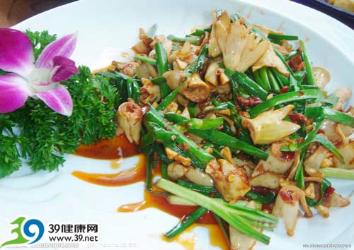 2.章鱼干稍浸泡,撕成条块;陈皮泡软,刮去白瓤;