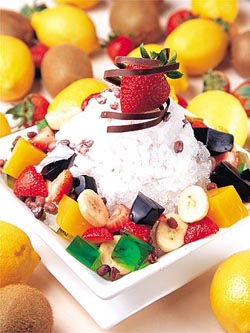 2、苹果与哈密瓜去籽、去皮,切成同鱼肉大小的方形片,淀粉调成糊状。