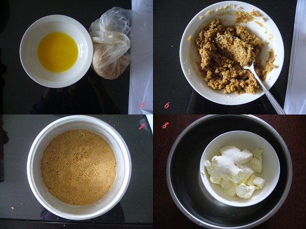 7.把消化饼倒入模具中(6寸模具)压平,备用