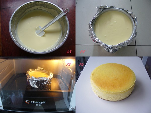 15.烤盘中加水,170度预热20分钟,放入中下层170度烤40分钟(提醒一下,如果是活底模的话一定要在外面包上锡纸,否则会漏水的),然后倒掉水,150度再烤30分钟