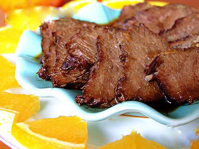 牛肉、八角、桂皮、葱段、姜片、蒜瓣、橙皮、料酒、盐、冰糖、酱油、花生油。