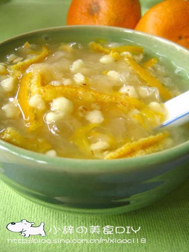 3、柑橘皮切丝,柑橘瓣掰小块。