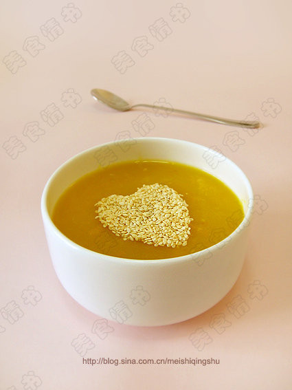 4.南瓜泥放入汤锅,加入清水煮开,清水与南瓜泥的比例为2比1。