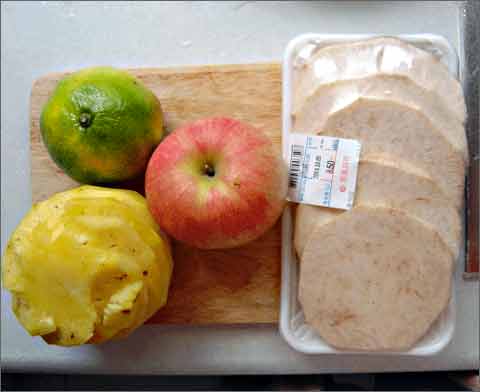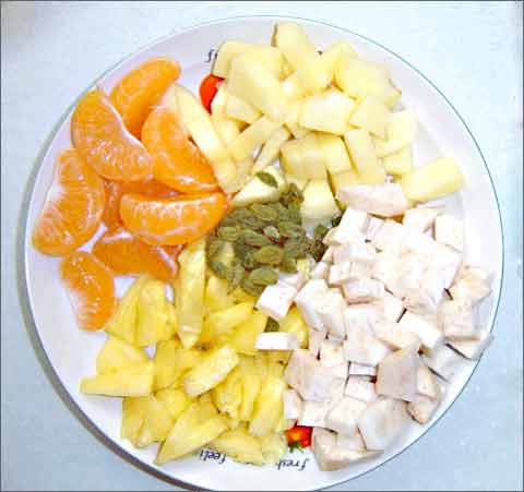 桔子剥成瓣,其余切成丁,我又加了一把葡萄干