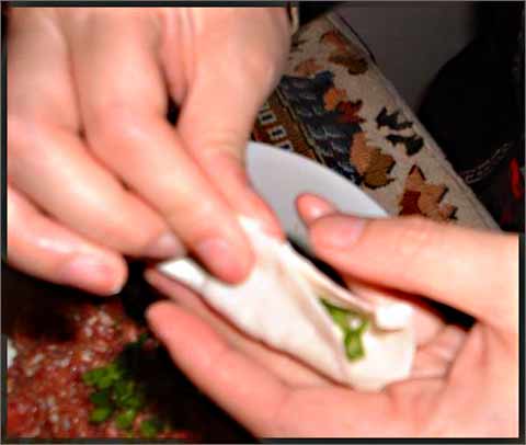 包起来的方法很简单:把饺子皮中间捏住,两边要通风哦!