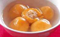 做法: 1.将猪肉肉糜加盐,酱油,麻油,砂糖,姜蓉,葱花,高汤,淀粉调成肉馅。