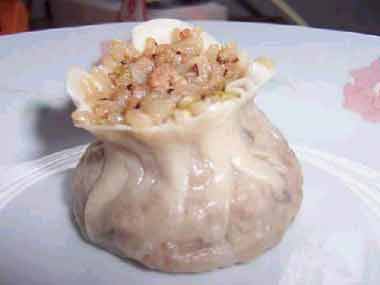 7.最后,把包好的烧麦放入锅中蒸个桑拿,十分钟后,就大功告成了。