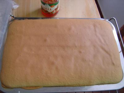 12、马上倒扣在烤架上,切去四边硬边边,然后涂果酱,