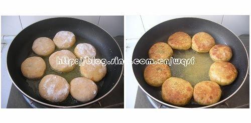 5、将做好的柿子饼放入油中,小火煎至两面金黄即可。煎好的柿子饼最好用厨房纸吸去多余的油份,好吃也要健康哦