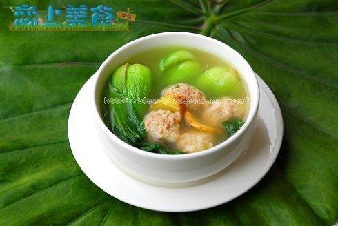 材料:猪肉馅、大葱、生姜、青菜、鸡汤
