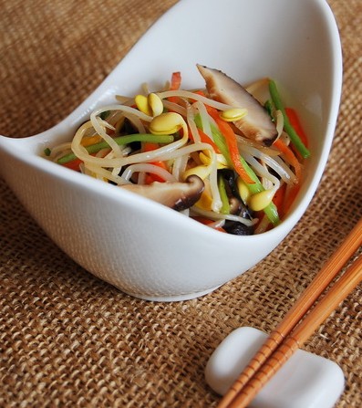 黄豆芽250克,香菇4朵,黑木耳1小把,胡萝卜1小根,芹菜4支