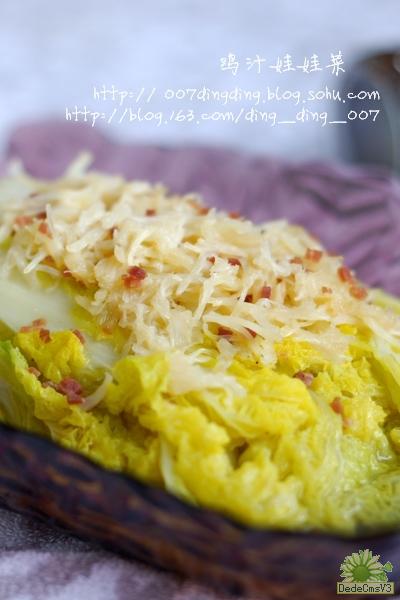 菜式解析:看上去写了不少,其实做起来很简单,照样画瓢即可达到零失败率。 干贝的鲜甜和火腿的咸香加上鲜美的鸡汁通过蒸汽的作用把娃娃菜衬托的鲜香无比, 同时还能兼顾天然和健康,个人认为非常值得一试。 ^_^