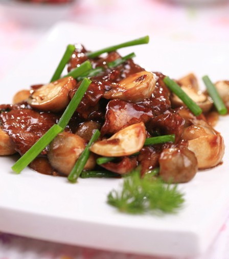 12、然后放入用酱油调色勾芡撒入葱段出锅。