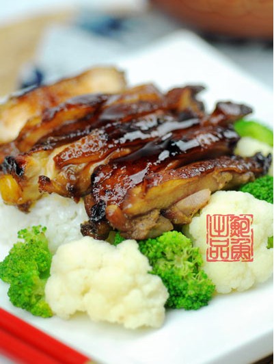 温馨提示: 1、尽量选用鸡腿的上腿肉部分,这一部分肉质嫩滑多汁,琵琶腿部分筋比较多,如果使用最好用刀把筋剔除; 2、照烧酱汁也被叫做万能酱汁,应用十分广泛,可以用作炖煮,煎制,烧烤等多种用途,希望诸位筒子活学活用; 3、煎制鸡腿时注意首先要皮朝下下锅,这样有益于鸡腿肉的定型,煎好后翻面倒入酱汁,在炖煮一会即可完成。