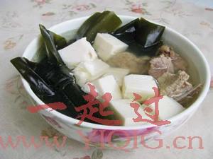 豆腐海带排骨汤主料:豆腐1盒、海带150g、排骨150g