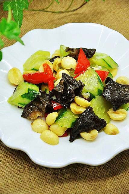 【原料】莲子、大蒜、黄瓜、黑木耳、红辣椒、盐