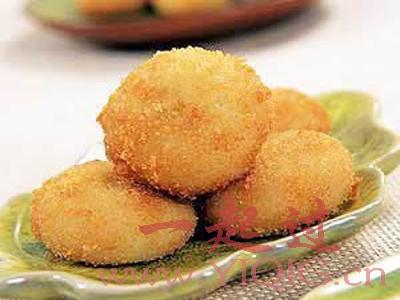 1.将山药洗净,入笼煮熟去皮,压碎成泥放入盆内,加干淀粉揉成山药粉团。
