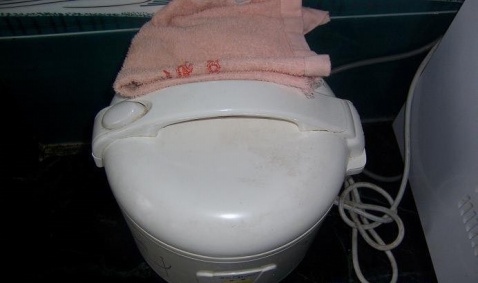 把电饭锅的上面的出气孔用布给堵上。。。进行闷!20分钟以后,再按一次煮饭键,继续让它闷20分钟。就可以了。(我家电饭锅小,只有500瓦,其他朋友家如果电饭锅大,可能时间更少,自己琢磨吧。)