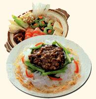 原料: 粉丝六两 白糖五分 酱油一两 辣椒油五钱醋三钱 花椒粉一钱 味精一分 制法: 先将粉丝用开水泡软,切成二寸长的段放盘内。用碗一只,放入酱油、醋、白糖、味精和冷开水五钱,调成卤汁,浇在粉丝上,撒上花椒粉,淋入辣椒油,拌匀即成。
