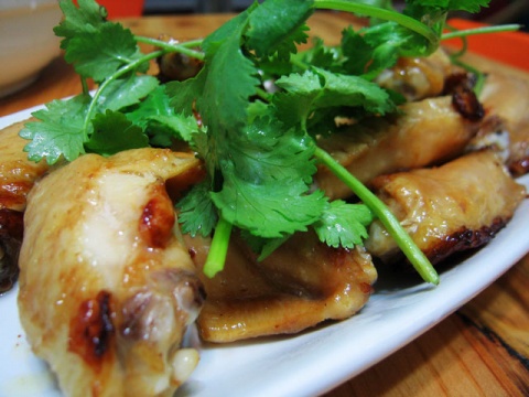 材料:12个鸡翅中,先用生抽、老酒腌制。