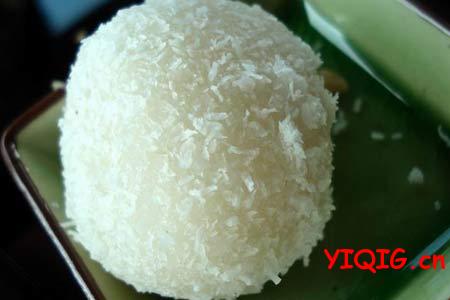 3、将肉团在糯米中滚一下,沾满糯米粒(一起过 www.yiqig.cn)。