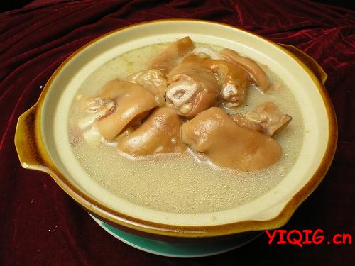 ⑤猪蹄压好之后不要急着把高压锅打开,等到一个小时左右,让猪蹄再捂一下(www.yiqig.cn 一起过)。
