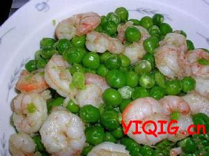 四:豌豆炒虾仁:主料:虾仁250克,嫩豌豆100克,鸡汤25毫升,料酒10克,精盐1克,味精1.5克,湿淀粉5克,豆油750克(实耗50克),芝麻油10克,辣椒面15克。做法:1、将嫩豌豆洗净,放入开水锅中,用淡盐水氽一下,待用;2、炒锅中火烧热,放入豆油,待三成热时,将虾仁入锅,快速用竹筷划散,炸约10秒钟,倒入漏勺,控油(炸时要掌握热锅,冷油,快速,则不粘锅);3、炒锅内留25克底油,烧热,投入辣椒,稍炒一下,放入豌豆,翻炒几下,再烹入料酒、鸡汤、盐、味精,随即放入虾仁,用湿淀粉勾薄芡,将炒锅颠翻几下,淋上芝麻油,出锅,入盘,即可。