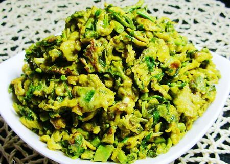 [原料]:嫩香椿头150克,鸡蛋6个,盐、料酒、植物油各适量。