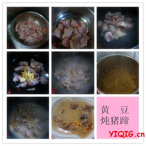 猪蹄1只,黄豆,生姜,枸杞,盐,料酒,胡椒粉