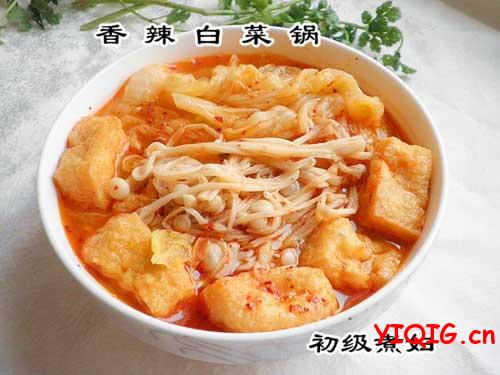 7,金针菇和豆泡放入锅中,煮至白菜软烂即可。