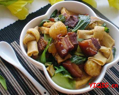 这个菜是冬天的暖身菜啊,可是爱美的人士却不敢多吃,因为所谓‘暖身’就是把这一大块的肉吃下,让脂肪都长到自己身上好抵抗严寒,可这红烧肉的味道却又让人难以抗拒,想吃又想保持体形,最简单的方法就是找既能吸收肉汤,能量又低的食物和红烧肉烩一下不就两全其美了吗,所以我个人认为青菜和豆腐是首选。