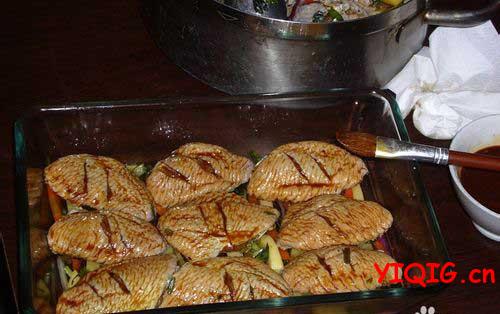 7、腌鸡翅渗出的汁液加入酱油和少许淀粉,把鸡翅的表面再刷一遍一起过www.yiqig.cn。