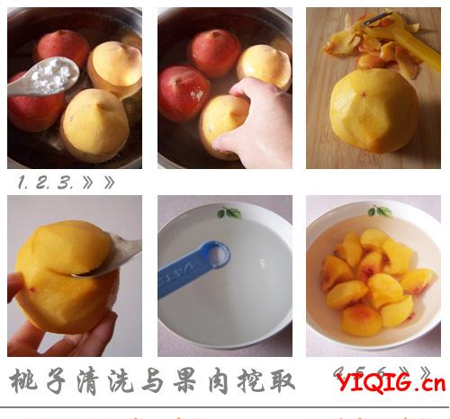 【桃子的清洗与果肉的挖取】: