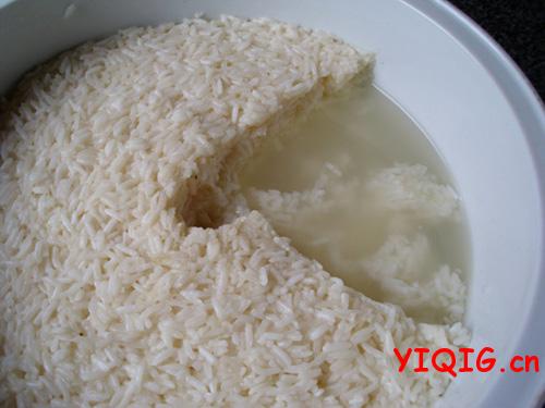 10.再过12--24小时后,可以看到出酒很多,米则是整块的漂浮在酒水的上面,这样就做好了。(一起过www.yiqig.cn)