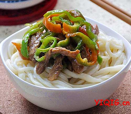假如不喜欢吃肉,那就青椒炒茄子,拌上面条,也是美味。一道菜一碗面一碗面汤,这一餐,足矣!拌面的时候,可以再放一点醋和辣子油,怎么吃随自己了!(一起过www.yiqig.cn)
