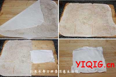 14.然后将每一片都折叠在一起成为一个多层的面饼,将四周捏合